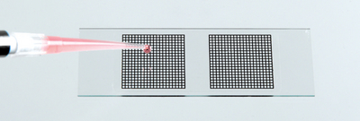 Twin Grid Stickers^ Side by side twin grid stickers. Each grid is 20mm x 20mm with 1mm line spacing for microscope slides. Chemically Inert. Polyester with acrylic adhesive. 40 stickers per pack.