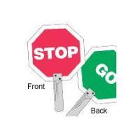 Traffic Control Paddles^ 18 Octagon. Aluminum. Side 1: White on Red / Side 2: White on Green.