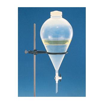 Phase interface visible down to stopcock.Polypropylene funnel and screw closure are chemically inert, translucent, autoclavable and have no known solvents at room temperature.Susceptible to softening and swelling from strong oxidizers and aggressive solvents.TFE stopcock assembly has excellent chemical resistance, is leakproof and does not require lubrication.