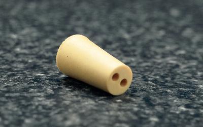 Rubber Stoppers, Two-Hole^ High Resiliency, Pure Gum. Less Free Sulfur (1/4%) And Lower Density Than Standard Black Rubber Stoppers. Holes Facilitate Laboratory Usage. Size: 5. Diameter Of Top: 27Mm. Bottom: 23Mm. Hole Diameter: 5Mm.