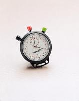 This compact stopwatch is rugged and easy to use, featuring time-out and safety reset functions. The logically color-coded push-buttons minimize timing errors and ensure efficient use: green for start, red for stop, and black for returning to the zero position. The instant flyback function resets and starts immediately. The 30-second dial is graduated in tenths of a second, and the 0-15 minute register features color contrast for easy reading. This stopwatch offers timing to 0.1 seconds, plus time-out, with color-coded push-button control, shock-protected pin-lever movement, and an ABS plastic case.