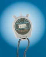 Here is the corrected text: This stopwatch is designed for easy-duty, occasional use where high precision is not required. It times up to 24 hours with a resolution of 0.01 seconds for the first thirty minutes and one second thereafter. The modes include start/stop, time-out, cumulative split, and continuous roll-over timing. Additionally, it displays the time and date. Each button press is confirmed with an audible sound. Features: • Traceable • Designed for occasional, easy-duty use • Multiple modes of functionality • Audible confirmation of button pressing Certifications: A serial-numbered certificate is provided from an ISO 17025 calibration laboratory accredited by A2LA, indicating instrument traceability to standards provided by the National Institute of Standards and Technology. Ordering Information: Supplied with a lanyard and a 1.5 V silver-oxide battery. Product Specifications: Diameter: 5.4 cm (2¹/₈") Accuracy: 0.1% Catalog Number: 62379-234