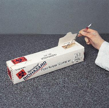 Terminal* Pipet Keeper*^ For the collection of biohazard waste at the point of generation. Holds objects up to 35.6cm long. Constructed of sturdy, plastic-lined paperboard for leak resistance. Autoclavable container has a reclosable flap. Capacity: 2100ml. Dimensions: 36.8Lx7.6Wx7.6Hcm.