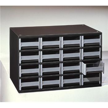 Stackable cabinetsHeavy-duty, opaque drawers with transparent windows, virtually unbreakableMade of gray high-impact polystyrene and are rust, corrosion and dent-proofTransparent windows allow instant visual inventory of contentsMolded in label holders for easy identity of stored itemsRemovable drawers have special stop-tab at rear preventing spills when drawer is fully opened. Overall dimensions 11” x 17” x 11”. 2175E50 cabinet has 15 drawers, each measuring 10 9/16” x 3 3/16” x 3 3/16”. 2175E55 cabinet has 16 drawers, each measuring 10 9/16” x 4” x 2 1/8”.