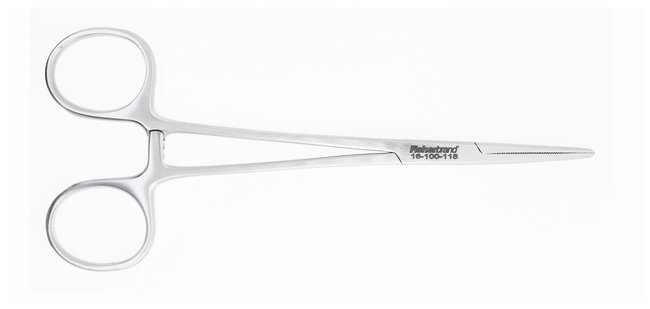 Straight serrated jawsStainless steelOverall length is 5 in. or 6 in. depending on modelDimensions of 5 in. model, L: 5 in. (125mm); W: 0.269 in. (7mm); H: 0.157 in. (4mm)Dimensions of 6 in. model, L: 6 in. (152mm); W: 0.269 in. (7mm); H: 0.172 in. (4mm)