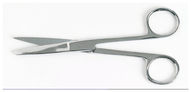 Closed-shankStainless-steel scissors have one sharp and one blunt tip for cutting connective tissue and muscle