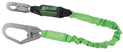 STRETCHSTOP W/REBAR GREEN ANSI^ Miller StretchStop* single leg lanyard with SofStop* shock absorber and ANSI Z-359 snap and rebar hooks. 6 ft in length.