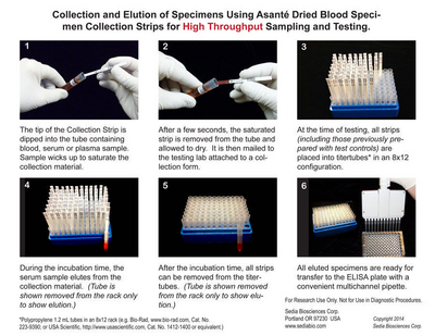 Dried Blood Specimen Collection Strip^ Sedia*Asante* Dried Blood Specimen Collection Strips, for the collection, transport, storage, testing and archiving of blood specimens, including finger stick blood or venous blood, serum or plasma, collects about 15ul of whole blood, Width: 3 mm, 100 Strips