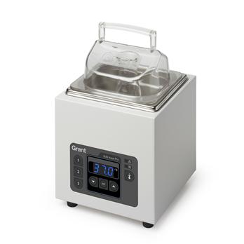 Specifications Ambient 5°C to 99°C0.1°C setting resolutionDrain tap & transparent lidTimer & presetsAdjustable over temperature alarm120V & 230V models availableCE and CSA approved3 year manufacturer warrantyLid and base tray included as standard. Additional accessories available as optional extras.Built to the highest standard and specifications, and incorporating the latest technology, the SUB Aqua Pro advanced unstirred water bath range supports even the most demanding applications requiring accurate temperature control. Choose from eight models each with base tray and lid included as standard.The SUB Aqua Pro advanced water bath range benefits from key features such as the newly incorporated Set and Forget™ technology and advanced dry start and run dry protection. These are in addition to the standard features which include an adjustable over-temperature alarm to provide sample protection, programmable temperature presets, front panel lock, two point calibration and drain tap on bath sizes 12L and above. Set and Forget™ technology ensures fast heat up and excellent temperature accuracy. SUB Aqua Pro baths take minimal time to set up, allowing maximum time for work. Grant’s advanced dry start and run dry protection cuts off heating and alarms if the bath is started dry or runs dry. This feature removes the need for inconvenient and costly service repair. Simply fill and restart. Thomas No.Tank SizeWorking area (mm)Temp. stability1201L752L131 x 117 x 132±0.2ºC1201L762L289 x 139 x 47±0.2ºC1201L775L281 x 131 x 132±0.2ºC1201L7812L306 x 281 x 132±0.2ºC1201L7918L281 x 485 x 132±0.2ºC1201L8026L278 x 481 x 182±0.2ºC1201L8134L281 x 635 x 180±0.2ºC1201L8212L306 x 281 x 132±0.2ºC