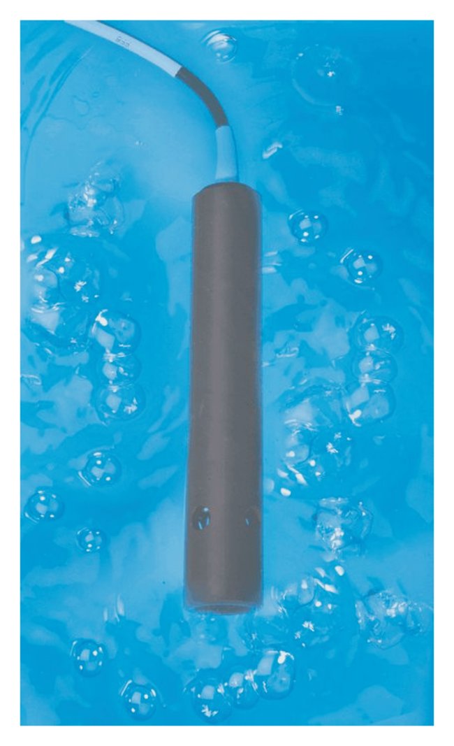 Submersible pH electrode features large backlit LCD showing the measured value, measured units, temperature, time, battery life and menu options.