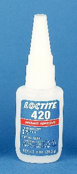 Super Bonder* 420* Instant Adhesive^ Penetrates by capillary action between preassembled components. Parts may be made of metal, plastic, or elastomer materials and must be close-fitting. Adhesive fills gaps to 0.005cm. Temperature range: -53 to 82[degree]C. Fixture time: 20 seconds. 28.3g bottle.