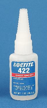 Super Bonder* 422* Instant Adhesive^ For applications requiring high viscosity and slow fixturing speeds. Bonds rough surfaces and fills gaps up to 0.020cm on plastics, elastomers, and metals. Temperature range: -53 to 82[degree]C. Fixture time: 30 seconds. Viscosity: 2500cP. 28.3g bottle.