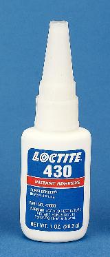 Super Bonder* 430* Instant Adhesive^ General industrial-grade cyanoacrylate adhesive for close-fitting metallic parts. Fills gaps up to 0.012cm. Temperature range: -53 to 82[degree]C. Fixture time: 30 seconds. Viscosity: 80cP. Supplied in a 28.3g bottle.