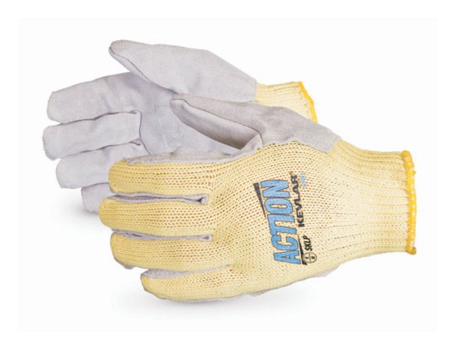 Aramid fiber cut and slash-resistant gloves feature leather palm and thumb to offer protection and extended wear.