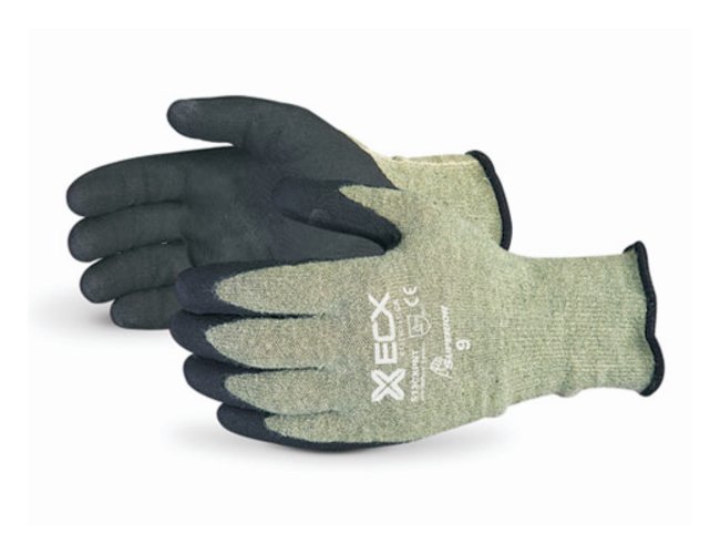 Cut-resistant gloves offer a blend of aramid fiber and stainless steel with micropore nitrile palm coating.