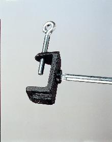 Support Rod Holder^ Holder consists of a heavy, cast-iron enameled clamp for fastening to the edge of a table, bench or shelf up to 38mm thick. Holder accommodates two 9.5mm diameter support rods at right angles and comes with a 9.5mm diameter by 508mm, plated steel rod.