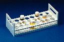 Scintillation Vial Rack^ Polypropylene. Holds 24 scintillation vials (30mm) for storage or preparation of cocktails. Autoclavable. Dimensions: 29.8Wx12.7Dx9.5Hcm. Shelf height: 4.4cm.