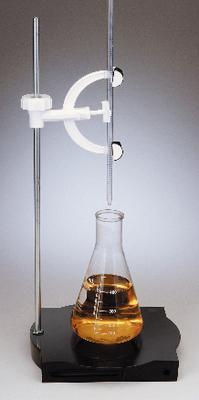 SCIENCEWARE* Support Stand^ Polycarbonate base supports a 46cm tall stainless steel support rod. Two hex nuts secure 7.9mm diameter rod to base. Offset rod mounting to 20.8cm diameter base leaves area for larger vessels. Useful temperature range: -135 to 135[degree]C. Autoclave at 121[degree]C. Does not include buret clamps.