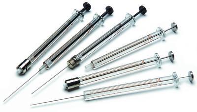 1700 Series GASTIGHT* Cemented Needle Syringe, Point Style 2^ For liquids or gases. Precision-machined fluoropolymer resin tip. For applications requiring puncturing of septum. Carries less dead volume. Prevents septum coring. Needle length: 5.1cm. Volume: 250uL. 22S gauge. Small bore.