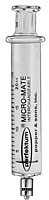 SYRINGE, LUER LOCK, MICRO-MATE^ 2cc. Subdivisions: 1/10cc. Borosilicate glass syringe with interchangable barrels and plungers. Colored plunger ends identify the capacity of the syringe. Flanges are flat on two sides to prevent syringe from rolling.
