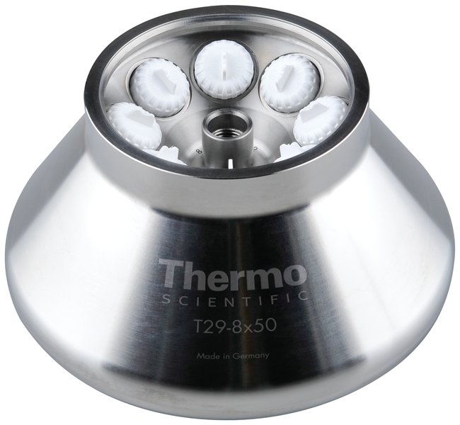 Carry out applications with a new level of high g-force (up to 100,605 x g) in superspeed using the Thermo Scientific™ T29-8 x 50mL Fixed-Angle Rotor. Rotor innovations—from Thermo Scientific™ Auto-Lock™ rotor exchange, to Thermo Scientific™ Auto-ID™ instant rotor identification, to speed handles on each rotor lid—shorten run set-up time while providing peace-of-mind that the rotor is secure.Auto-Lock Rotor ExchangeSecure, push-button rotor exchange in less than 3 secondsImproved safety and convenienceNo tools requiredQuickly change rotors and applications Auto-ID Instant Rotor IdentificationImmediate identification of a rotorRotor specifications automatically loaded into centrifuge parametersShortens run set-up time, improves safety Speed HandleAccelerates and simplifies rotor lid tightening, ensuring lid is properly attachedEasier and safer lifting and carrying of rotors, further enhanced with the lightweight designThis product(s) resides on a Fisher Scientific GSA or VA contract. If you are viewing this page as a nonregistered user, the price(s) displayed is List Price. To view your GSA or VA contract pricing, log in using your account number, or become a registered user by contacting one of our Customer Service teams. You can also view your contract price by searching for this item(s) on GSA Advantage. To place an order, contact Fisher Scientific Customer Service.