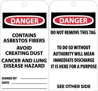 TAG DANGER CONTAINS ASBES, Pack of 25