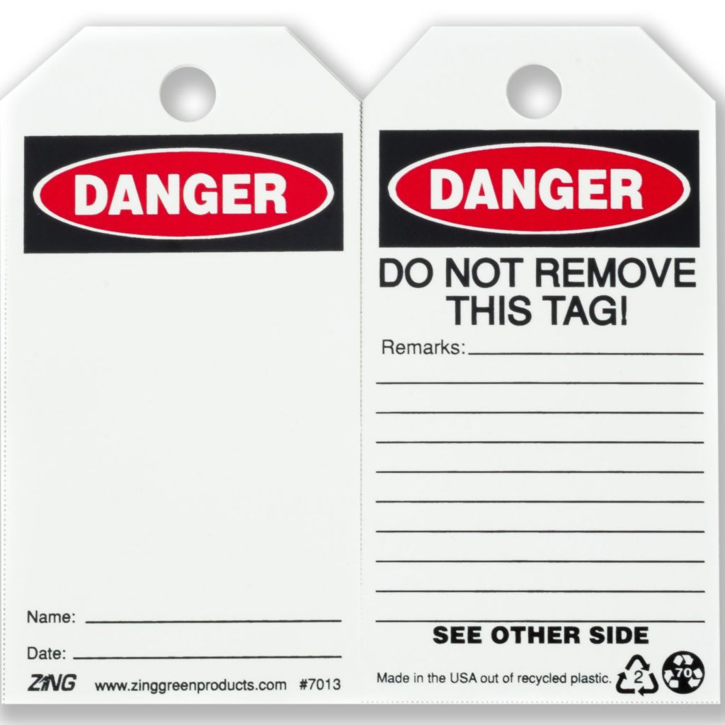 Tag Danger Blank^ Eco Safety Tag Danger Blank, 70% Post-Consumer Recycled Plastic, Ul Validated For Recycled Content, Measures 5.75In H X 3In W, Exceeds Osha'S 50 Lb. Pull Requirement, 10 Tags Per Pack, Supports Sustainability Initiatives And Leed Credits, Made In The Usa.