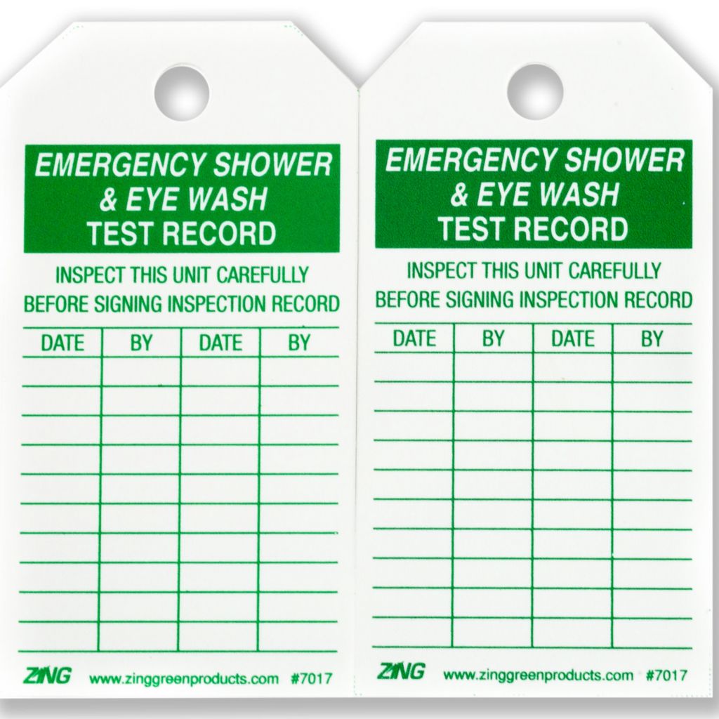 Tag Emerg Eyewash And Shower^ Safety Tag Emergency Eyewash And Shower Inspection, Date Table On Front And Back, 70% Post-Consumer Recycled Plastic, Exceeds Osha'S 50 Lb. Pull Requirement, Measures 5.75In H X 3In W, 10 Tags Per Pack, Made In The Usa.