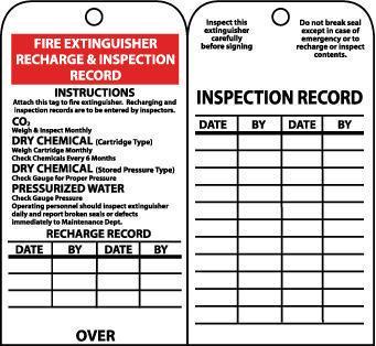 Tags, Fire Extinguiser Recharge And Inspect., 6X3 1/4, Unrip Vinyl, 25/Pk^
