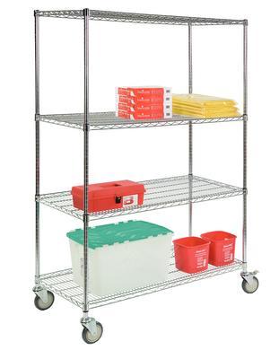 Depth: 18", Width: 60", Feature bright chrome-plated wire shelves and corner posts., Shelves have truss-reinforced edges for exceptional durability. Shelves are adjustable in 5.1 cm (2") increments. Carts can support up to 544kg (1200lbs.) when weight is evenly distributed., 02_BulletPoint: Chrome-plated construction | Round post design | Adjustable in increments | Exceptionally durable, 10_Ordering: Supplied with four shelves, four corner posts, and four 12.7 cm (5") swivel casters., Height: 80", Cat. No.: 89410-062, Shipping weight: 112 lbs., Load capacity: 1200 lbs., Depth: 18", Width: 48", Feature bright chrome-plated wire shelves and corner posts., Shelves have truss-reinforced edges for exceptional durability. Shelves are adjustable in 5.1 cm (2") increments. Carts can support up to 544kg (1200lbs.) when weight is evenly distributed., 02_BulletPoint: Chrome-plated construction | Round post design | Adjustable in increments | Exceptionally durable, 10_Ordering: Supplied with four shelves, four corner posts, and four 12.7 cm (5") swivel casters., Height: 80", Cat. No.: 89410-060, Shipping weight: 71 lbs., Load capacity: 1200 lbs., Depth: 18", Width: 36", Feature bright chrome-plated wire shelves and corner posts., Shelves have truss-reinforced edges for exceptional durability. Shelves are adjustable in 5.1 cm (2") increments. Carts can support up to 544kg (1200lbs.) when weight is evenly distributed., 02_BulletPoint: Chrome-plated construction | Round post design | Adjustable in increments | Exceptionally durable, 10_Ordering: Supplied with four shelves, four corner posts, and four 12.7 cm (5") swivel casters., Height: 80", Cat. No.: 89410-058, Shipping weight: 66 lbs., Load capacity: 1200 lbs., Feature bright chrome-plated wire shelves and corner posts., Shelves have truss-reinforced edges for exceptional durability. Shelves are adjustable in 5.1 cm (2") increments. Carts can support up to 544kg (1200lbs.) when weight is evenly distributed., 02_BulletPoint: Chrome-plated construction | Round post design | Adjustable in increments | Exceptionally durable, 10_Ordering: Supplied with four shelves, four corner posts, and four 12.7 cm (5") swivel casters., Depth: 18", Width: 36", Feature bright chrome-plated wire shelves and corner posts., Shelves have truss-reinforced edges for exceptional durability. Shelves are adjustable in 5.1 cm (2") increments. Carts can support up to 544kg (1200lbs.) when weight is evenly distributed., 02_BulletPoint: Chrome-plated construction | Round post design | Adjustable in increments | Exceptionally durable, 10_Ordering: Supplied with four shelves, four corner posts, and four 12.7 cm (5") swivel casters., Height: 60", Cat. No.: 89410-026, Shipping weight: 62 lbs., Load capacity: 1200 lbs., Depth: 24", Width: 60", Feature bright chrome-plated wire shelves and corner posts., Shelves have truss-reinforced edges for exceptional durability. Shelves are adjustable in 5.1 cm (2") increments. Carts can support up to 544kg (1200lbs.) when weight is evenly distributed., 02_BulletPoint: Chrome-plated construction | Round post design | Adjustable in increments | Exceptionally durable, 10_Ordering: Supplied with four shelves, four corner posts, and four 12.7 cm (5") swivel casters., Height: 80", Cat. No.: 89410-070, Shipping weight: 112 lbs., Load capacity: 1200 lbs., Depth: 24", Width: 48", Feature bright chrome-plated wire shelves and corner posts., Shelves have truss-reinforced edges for exceptional durability. Shelves are adjustable in 5.1 cm (2") increments. Carts can support up to 544kg (1200lbs.) when weight is evenly distributed., 02_BulletPoint: Chrome-plated construction | Round post design | Adjustable in increments | Exceptionally durable, 10_Ordering: Supplied with four shelves, four corner posts, and four 12.7 cm (5") swivel casters., Height: 80", Cat. No.: 89410-068, Shipping weight: 92 lbs., Load capacity: 1200 lbs., Depth: 24", Width: 36", Feature bright chrome-plated wire shelves and corner posts., Shelves have truss-reinforced edges for exceptional durability. Shelves are adjustable in 5.1 cm (2") increments. Carts can support up to 544kg (1200lbs.) when weight is evenly distributed., 02_BulletPoint: Chrome-plated construction | Round post design | Adjustable in increments | Exceptionally durable, 10_Ordering: Supplied with four shelves, four corner posts, and four 12.7 cm (5") swivel casters., Height: 80", Cat. No.: 89410-066, Shipping weight: 84 lbs., Load capacity: 1200 lbs., Depth: 18", Width: 72", Feature bright chrome-plated wire shelves and corner posts., Shelves have truss-reinforced edges for exceptional durability. Shelves are adjustable in 5.1 cm (2") increments. Carts can support up to 544kg (1200lbs.) when weight is evenly distributed., 02_BulletPoint: Chrome-plated construction | Round post design | Adjustable in increments | Exceptionally durable, 10_Ordering: Supplied with four shelves, four corner posts, and four 12.7 cm (5") swivel casters., Height: 80", Cat. No.: 89410-064, Shipping weight: 118 lbs., Load capacity: 1200 lbs., Depth: 24", Width: 36", Feature bright chrome-plated wire shelves and corner posts., Shelves have truss-reinforced edges for exceptional durability. Shelves are adjustable in 5.1 cm (2") increments. Carts can support up to 544kg (1200lbs.) when weight is evenly distributed., 02_BulletPoint: Chrome-plated construction | Round post design | Adjustable in increments | Exceptionally durable, 10_Ordering: Supplied with four shelves, four corner posts, and four 12.7 cm (5") swivel casters., Height: 60", Cat. No.: 89410-034, Shipping weight: 76 lbs., Load capacity: 1200 lbs., Depth: 18", Width: 72", Feature bright chrome-plated wire shelves and corner posts., Shelves have truss-reinforced edges for exceptional durability. Shelves are adjustable in 5.1 cm (2") increments. Carts can support up to 544kg (1200lbs.) when weight is evenly distributed., 02_BulletPoint: Chrome-plated construction | Round post design | Adjust