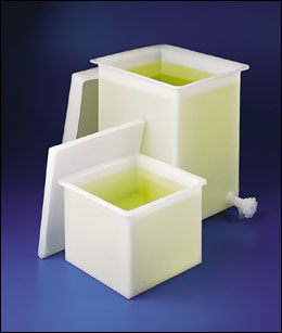 TANK, PE, RECTANGULAR, WITH LID, 15GALLON^ Seamless,rotational-molded polyethylene tanks are lightweight and easy to handle.