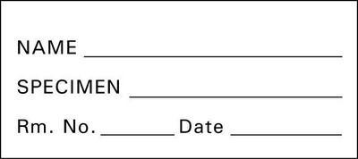 Specimen And Pathology Tape Labels^ Help Minimize The Possibility Of Transmitting Diseases And Insure Proper Specimen Identification. Color: White. Size: 57X25.4Mm. Label States "Name", "Hosp. No.", "Rm. No.", And "Date."