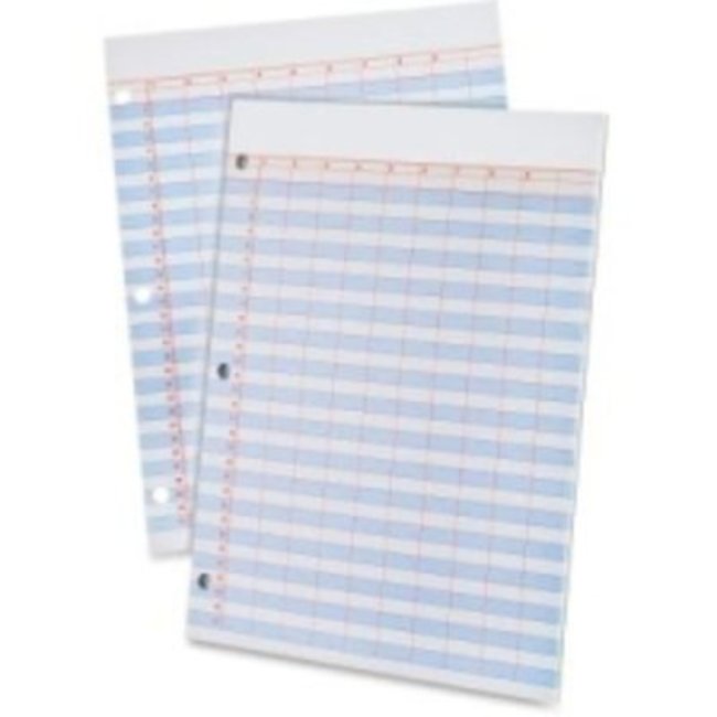 Data pad; Target Office; Ampad; Office supply; Printed on one side w/numbered lines and columns; Features shaded alternate lines w/rulings in red and blue ink. 50 sheets.