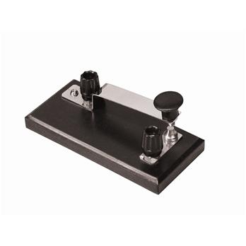 Telegraph key, mounted on a solid plastic base, measuring 11cm x 5cm.