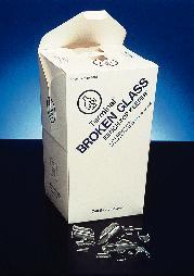 Terminal* Broken Glass Bench-Top Keeper* Container^ 3000ml capacity. For the safe collection of non-biohazardous broken glass. Contents are clearly identified. Plastic-coated lining for leak resistance. Self-locking container is autoclavable. 15.2x15.2x25.4cm.
