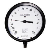 Ashcroft* Test Gauge 6in^ Ashcroft* Test Gauge, Analog, Diameter: 6in, Fittings: 1/4in NPT, Accurate measurement of vacuum to -30in Hg and pressure to 60 psi, Accuracy to /- 0.25%, operates on 2 AAA batteries, unambiguous readout, for verifying vacuum/pressure in canisters before/after sampling