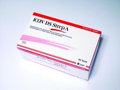 ICON* DS Strep A Test^ Rapid immunochromatographic assay for the qualitative detection of Group A Strep antigen directly from a throat swab specimen. Easy-to-use CLIA-waived dipstick format test. 98% accuracy.