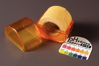 Hydrion Ph 9.0-12.0 Paper Refills 5Rolls/Pk^ Short range ph (9.0-12.0) paper showing a sharp color change for each half ph unit. 15 foot rolls of ph paper with 2 color charts. For standard single and double roll dispensers. Packed in heat sealed aluminum foil and tightly secured in a plastic case.