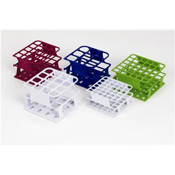 Extra tough to resist most acids, solvents, and heat. Extra-tough storage for smaller spaces.These durable racks are molded in a single, continuous piece—no assembly required and no detachable pieces. Racks are made of Delrin® fiberglass-reinforced polyoxymethylene (POM), an engineered polymer developed by DuPont to have exceptional chemical and heat resistance. Molded index coordinates and flat labeling areas keep samples organized. Half-size racks are convenient for incubators, fume hoods, refrigerators, and other tight spaces. Racks made with Delrin are autoclavable. Delrin® is a registered trademark of E.I. du Pont de Nemours and Company.