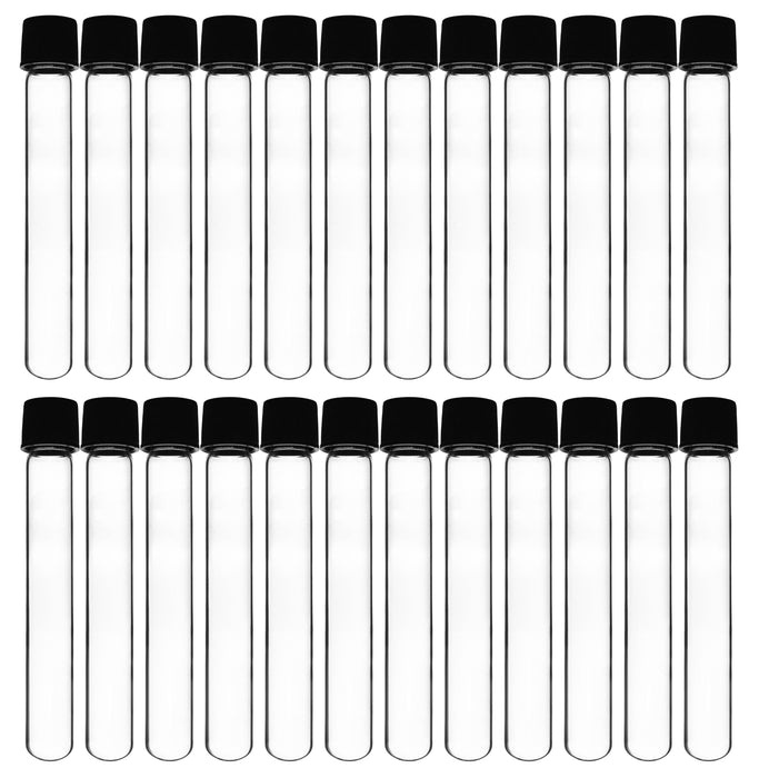 Pack of 24, round bottom culture tubes, each with a 10ml capacity. Tubes are made of high quality Borosilicate 3.3 Glass, and include a Bakelite screw cap with rubber liner for a leak proof seal. Tubes are useful for a variety of laboratory applications including transferring and storing chemicals and samples, and for handling and culturing biological material. Also suitable for use in the home or garage for crafting and storage.The culture tubes are autoclavable and features superior chemical durability. Low temperature gradient, allowing them to withstand high temperatures & thermal shocks.Each culture tube measures 0.6" wide and 3.9" tall (including cap).Designed for use in professional laboratories, but is an ideal choice for science classrooms and household use.