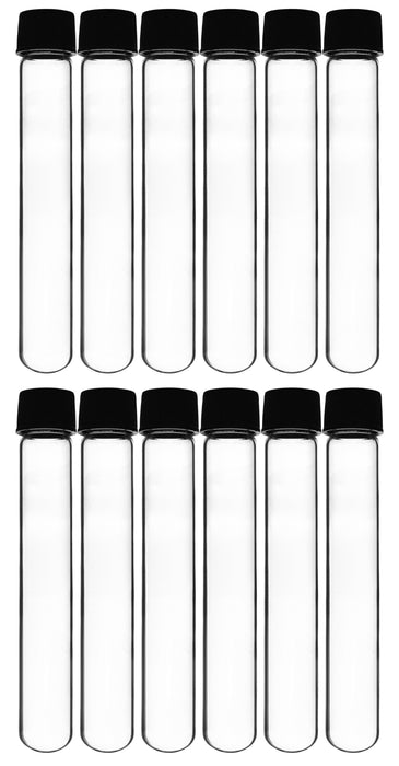 Pack of twelve, round bottom culture tubes, each with a 50ml capacity. Tubes are made of high quality Borosilicate 3.3 Glass, and include a Bakelite screw cap with rubber liner for a leak proof seal. Tubes are useful for a variety of laboratory applications including transferring and storing chemicals and samples, and for handling and culturing biological material. Also suitable for use in the home or garage for crafting and storage.The culture tubes are autoclavable and features superior chemical durability. Low temperature gradient, allowing them to withstand high temperatures & thermal shocks.Each culture tube measures 1" wide and 5.9" tall (including cap).Designed for use in professional laboratories, but is an ideal choice for science classrooms and household use.