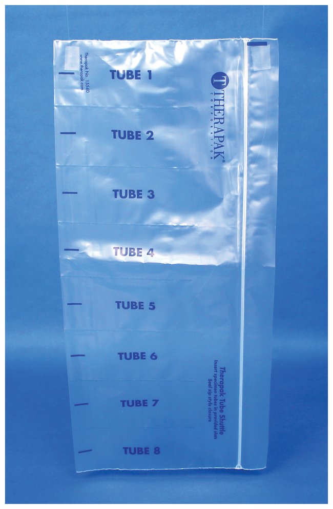Leak-tight construction for increased safety during transportNumbered tube slots for easy referenceTwo sizes available to hold six or eight blood or urine tubes (12–16mm dia.)Six-tube shuttle features a TearTech closure that folds down for a permanent seal, yet provides a natural perforation for easy opening at the labEight tube shuttle features a zip-style closureShuttles can be rolled or folded and placed inside a secondary watertight container