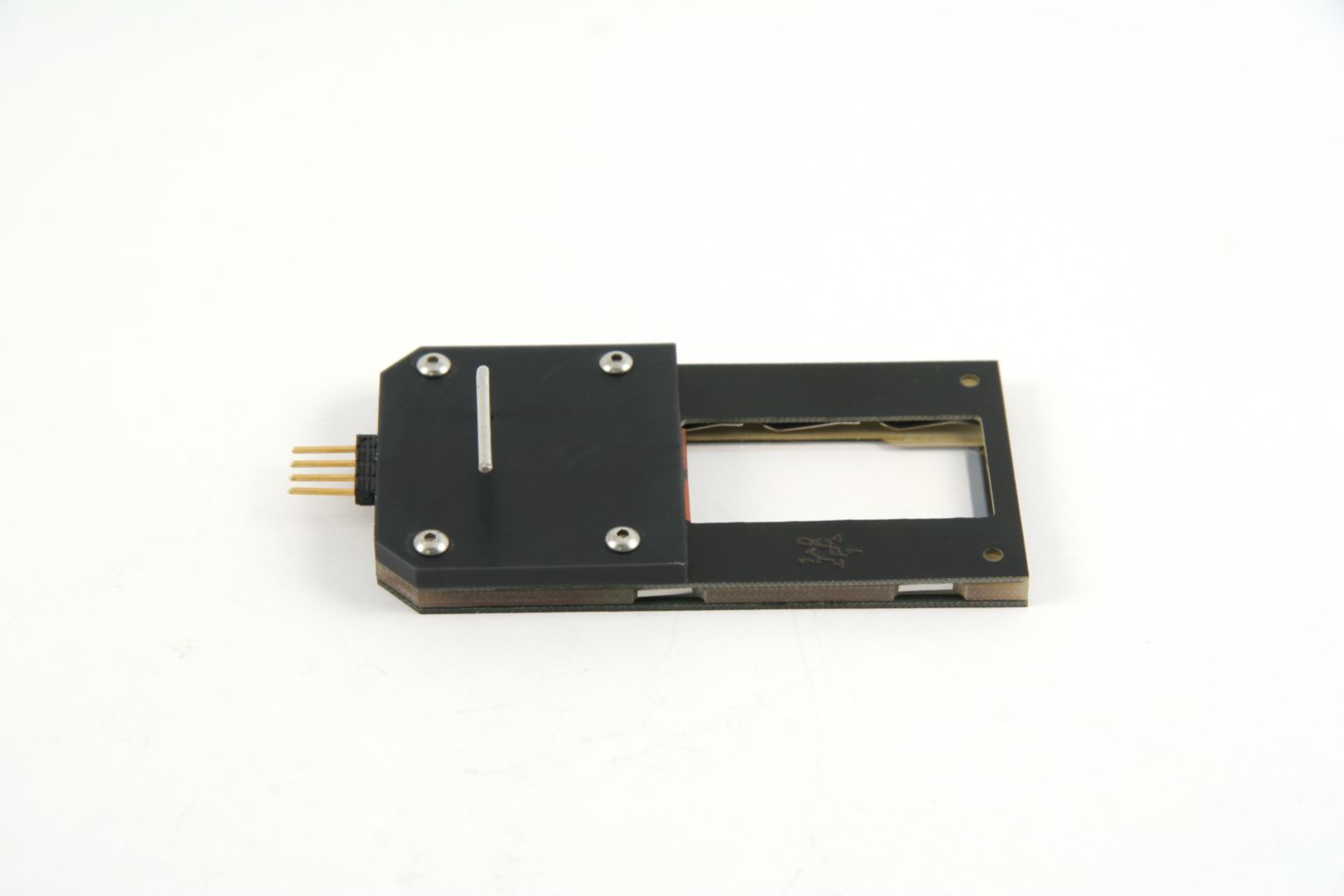 Thermal slide carrier^ Thermal slide carrier, A 3x1.5inch frame enclosure to hold, sense the temperature of and apply electrical power to a 25mmx60mm Thermal Slide. Fits all upright microscope slide retainers.