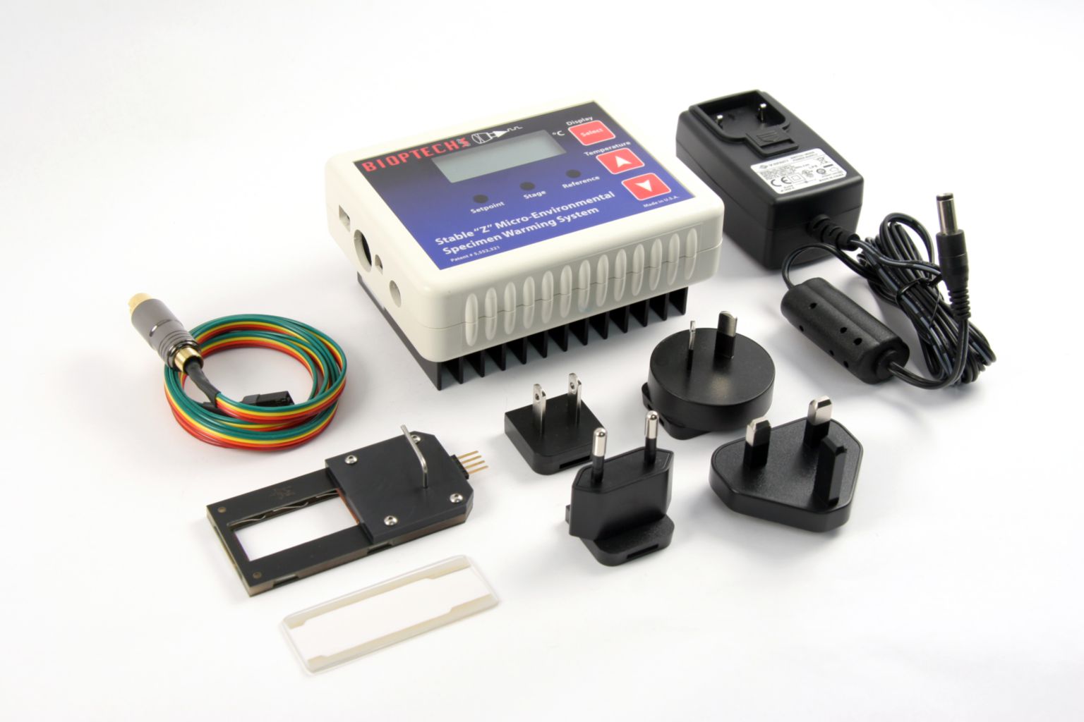 Thermal slide starter set^ Thermal slide starter set, A microscope slide temperature control system for upright microscopes consisting of an interchangeable microscope slide, thermal slide carrier, electronic controller, power supply and 5 reusable Thermal Slides