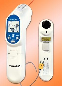Here is the corrected text: Temperature Range: –60 to 500°C (–76 to 932°F) for the thermometer, and –40 to 250°C (–40 to 482°F) for the supplied probe. This non-invasive, no-touch thermometer is ideal for food preparation, life sciences, pharmaceuticals, petroleum products, cleanrooms, electronics, and field use. It takes readings in less than a second, with a field of view of 11:1, allowing it to read a spot of 5 cm (2") from 55.9 cm (22") away. Emissivity is adjustable from 0.1 to 1.00 in 0.01 steps. The thermometer takes Celsius and Fahrenheit readings of solids, semi-solids, and liquids. It features minimum/maximum readings, which allow users to view the highest and lowest readings at any time. The memory function recalls individually captured temperatures and displays the average of all readings made, as well as the difference between two readings. Audible, user-settable high and low alarms signal out-of-range conditions. Backlighting permits viewing in low-light conditions, and the display indicates low battery. This thermometer features Traceable certification, non-invasive measurements, memory functions that recall past temperature readings, a backlit display for low-light conditions, and a hold function that freezes the display at the current reading. A serial-numbered certificate is provided from an ISO 17025 calibration laboratory accredited by A2LA to indicate traceability to standards provided by the National Institute of Standards and Technology. The thermometer is supplied with a Type-K probe and AAA alkaline batteries. Note that the supplied probe does not cover the full temperature range of the thermometer. Additional Type-K probes with various temperature ranges are available separately; contact your Avantor sales representative for more information. Temperature Accuracy: ±(2% + 1°C) % Temperature Resolution: 0.1° Dimensions: 7 × 3.8 × 17.8 cm (2.75 × 1.5 × 7 inches) Weight: 170 g (6 oz.) Cat. No.: 36934-178