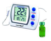Accurately monitor temperatures in freezers, water baths, heating blocks, incubators, and refrigerators with this enclosed temperature-buffered sensor. The triple display simultaneously shows minimum, maximum, and current temperatures. Minimum/maximum monitoring provides high/low readings overnight, on weekends, and for any time period - a significant advantage over current reading-only glass thermometers. The range is -58 to 158°F and -50 to 70°C with a resolution of 0.1° and an accuracy of ± 0.5°C. An alarm feature provides alerts when the temperature rises above or falls below a set point, programmable in 1° increments. The ten-foot micro-cable permits refrigerator doors to close on it. The probe is sealed in a miniature bottle filled with nontoxic glycol, which is GRAS (generally recognized as safe) by the US FDA. The bottle insulates the sensor from rapid temperature changes, and the solid-state probe eliminates mercury contamination in refrigerators. To ensure accuracy, an individually serial-numbered Traceable Certificate is provided from an ISO 17025 calibration laboratory accredited by A2LA, indicating traceability to standards provided by NIST. The thermometer is supplied with Velcro, magnetic strips, a battery, and a Traceable Certificate. VWR's CATALYST provides convenient and efficient re-calibration services for digital thermometers with an industry-leading 5-day average turn-around time from receipt of the instrument. All services are performed by an ISO17025 certified lab. Recalibration, certification, and shipping fees are included in the catalog number cost. Simply order the stated catalog number based on the desired number of calibration points. You will receive a protective box to ship your instrument to Avantor's certified calibration laboratory along with a work order form and a prepaid return shipping label. Upon receipt at the laboratory, your instrument will be inspected for any defects, and its performance will be compared to certified standards. After re-calibration, your calibration report and instrument will be carefully repacked and returned with standard ground shipping. Expedited service options are available upon request.