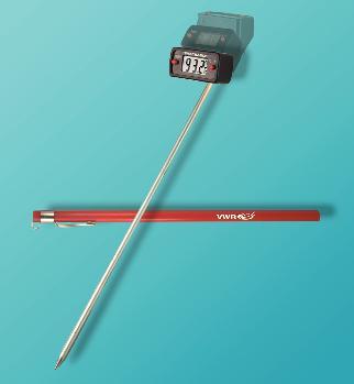 Here is the corrected text: The Robo Thermometer offers a temperature range of -50°C to 280°C (-58°F to 536°F) with an accuracy of ±0.4°C between -20°C and 100°C. The probe has a resolution of 0.1° from -20° to 200° and 1° elsewhere, making it ideal for reading temperatures in reagents, water baths, foods, air, and semisolids. Its long stem allows users to make measurements while stirring solutions, and the digital display conveniently rotates 180° to a vertical or horizontal position for easy viewing. The thermometer is resistant to acids, bases, solvents, and most laboratory chemicals, and its durable stainless steel and plastic construction makes it safer than mercury thermometers. The bright LCD digits are 6.4mm high and easier to read than pointer or mercury thermometers. Supplied with a one-year warranty and 1.5V battery, this thermometer is traceable to standards provided by the National Institute of Standards and Technology, as indicated by a serial numbered certificate from an ISO 17025 calibration laboratory accredited by A2LA. VWR CATALYST provides convenient and efficient re-calibration services for digital thermometers with an industry-leading 5-day average turn-around time. All services are performed by an ISO17025 certified lab, and recalibration, certification, and shipping fees are included in the catalog number cost. Simply order the stated catalog number based on how many calibration points are desired, and you will receive a protective box to ship your instrument to Avantor's certified calibration laboratory along with a work order form and a prepaid return shipping label. Upon receipt at the laboratory, your instrument will be inspected for any defects, and its performance will be compared to certified standards. After re-calibration, your calibration report and instrument will be carefully repacked and returned with standard ground shipping. Expedited service options are available upon request.
