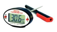 This digital stem thermometer is suitable for field studies, wet lab applications, wash-down areas, food testing, and tanks. It features a water-resistant IP65 protection class, making it ideal for use in liquids, semi-solids, and gases. The stainless-steel probe easily reaches into cuvettes, test tubes, flasks, beakers, and more. This thermometer includes accredited calibration documentation that meets the requirements of ISO 17025 and is individually serialized and CE marked. Note that this electronic stem thermometer is not suitable for solids such as frozen items. It has been tested and calibrated in an exclusive triple-accredited/registered ISO/IEC 17025:2017, A2LA-accredited laboratory (Cert #2448.01), against equipment whose calibration is traceable to NIST. The delivery includes multi-language instructions in English, French, German, Italian, Portuguese, and Spanish. The thermometer features an extra-long probe, data hold, auto-off, and has a temperature accuracy of ±1 °C from -20°C to +120°C; ±2 °C from -50°C to -20°C and 120°C to 200°C; otherwise ±3 °C. The temperature resolution is 0.1 °C/°F, with dimensions of 267×19 mm (10.5×0.75"). The probe measures 197 mm (7.75") in length and is made of stainless steel. It operates on an LR44 battery type and has a range of -50°C to +300°C (-58°F to +572°F). The calibration points are 0, 100 °C.