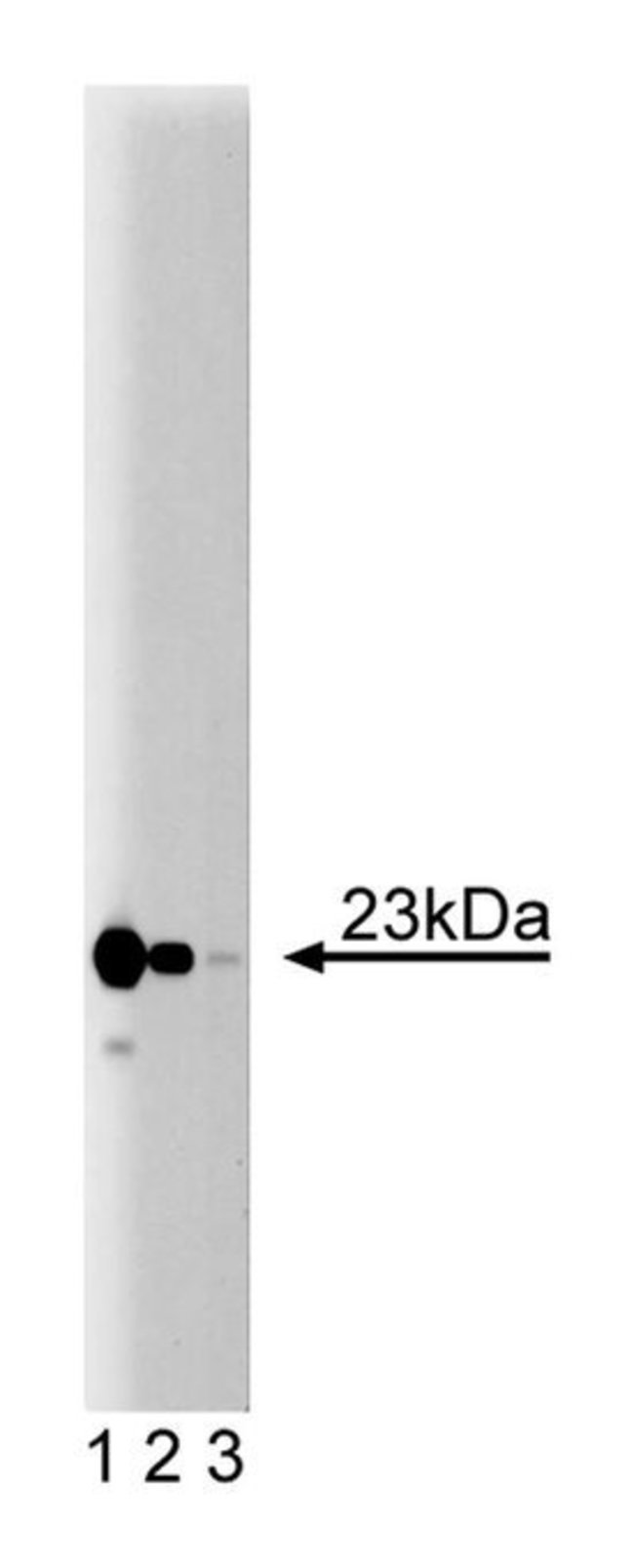 Mitochondria, the site of cellular energy production, must import all proteins necessary for their function. Import is mediated by two mechanisms: the translocase of the outer membrane (Tom) and the translocase of the inner membrane (Tim). Tim23 and Tim17 are integral membrane proteins that associate to form the import channel for mitochondrial preproteins that contain N-terminal hydrophilic sequences. They also associate with Tim44, an adaptor for the membrane binding of mtHsp70, a matrix heat shock protein, which drives the import of the processed preprotein. The N-terminal intermembrane space domain of Tim23 contains a leucine zipper motif and mediates the formation of a Tim23 dimer. As an imported protein passes through the TOM machinery, its N-terminal matrix targeting sequence interacts with the Tim23 dimer. This induces the dissociation of the dimer and initiation of inner membrane translocation of the presequence. In addition to its 9kDa N-terminal hydrophilic segment, Tim23 contains a 14kDa hydrophobic domain with four predicted membrane spans. Thus, Tim23 is an important integral membrane component of the mitochondrial protein translocation machinery.Host Species: MouseClone: 32Isotype: IgG2aSpecies Reactivity: MouseImmunogen: Rat Tim23 aa. 5-126Formula Weight [Chemical]: 23kDaImmunofluorescence, Western Blotting