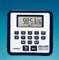 Here is the corrected text: This timer features individually numbered keys for alarm timing, down timing, stopwatch, time-out, and memory functions. Stopwatch mode counts up from 1 second to 99 hours, 59 minutes, and 59 seconds. The unit incorporates a flip-open easel for benchtop use, a spring fastener for attaching to a clipboard, a hole for use with a lanyard, and a magnetic back for placement on water baths, incubators, ovens, and more. Alarm mode can be programmed to count down or up and alarm at any time from 1 second to 100 hours. The display shows the time remaining or elapsed time. An extra-loud, high-decibel alarm is automatically silenced after one minute or may be turned off manually. A "TIME IS UP" message is displayed when the set time is reached. The unique "through zero" feature shows the time elapsed since the alarm has sounded. The timer also features Traceable certification, and the time of day can also be displayed. The memory function counts down from a recalled memory time. LCD digits continuously show the time and are readable from 2.4 meters (8 feet) away. A serial-numbered certificate is provided from an ISO 17025 calibration laboratory accredited by A2LA to indicate instrument traceability to standards provided by the National Institute of Standards and Technology. The timer is supplied with a 1.5 V silver-oxide battery and has dimensions of 7 × 7 × 1.3 cm (2³/₄ × 2³/₄ × ¹/₂"). Cat. No.: 62344-586.